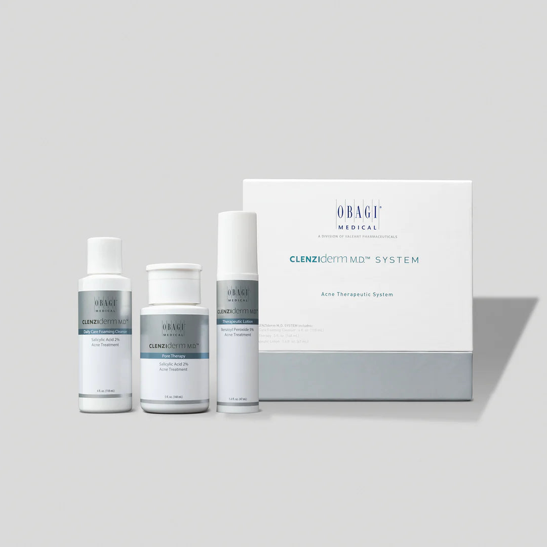 A 3-step acne treatment formulated to help combat acne and, with daily use, help prevent future acne from forming. The CLENZIderm M.D. Acne Therapeutic System includes clinically proven ingredients such as benzoyl peroxide and salicylic acid that help treat acne where it starts and help provide a clearer, healthier-looking complexion.