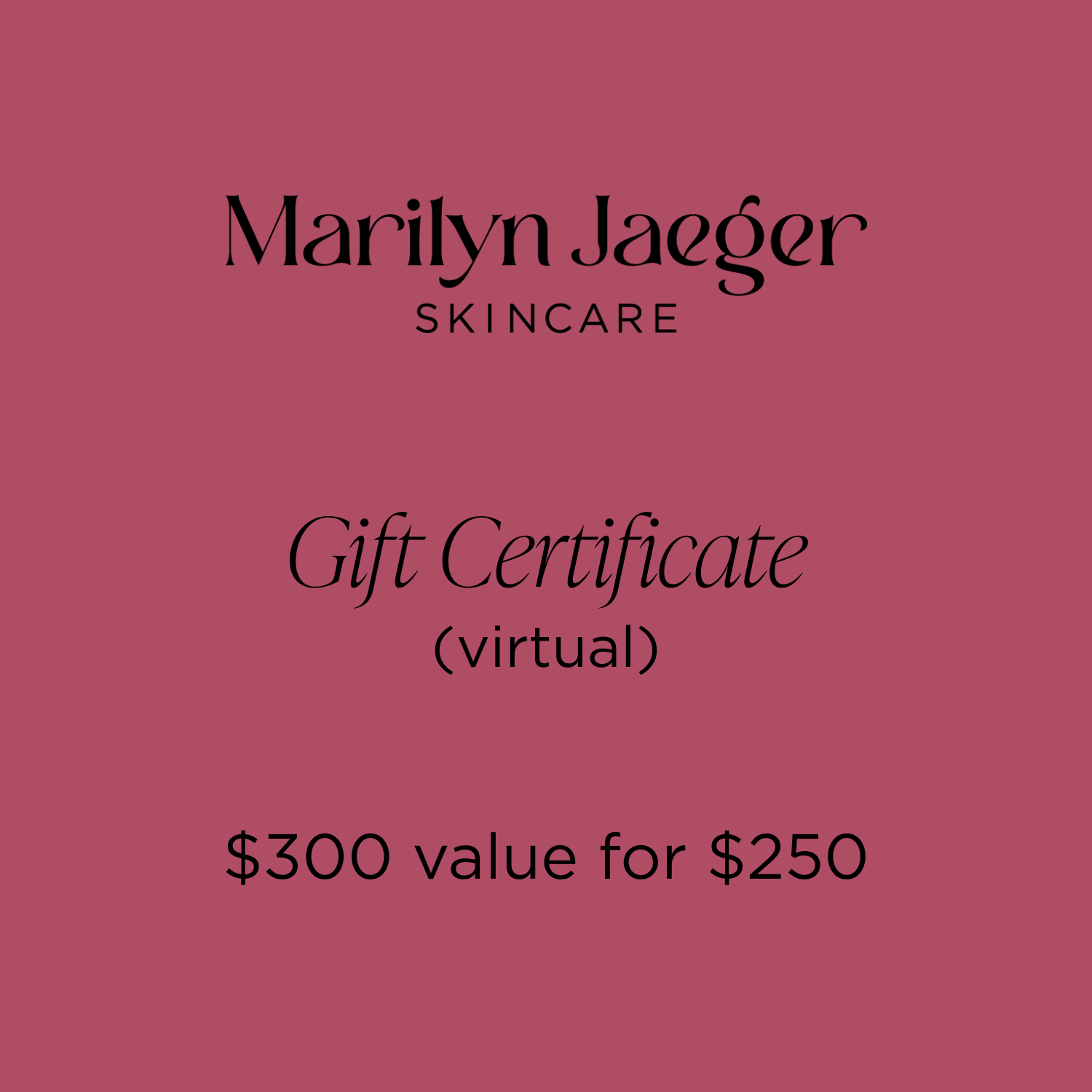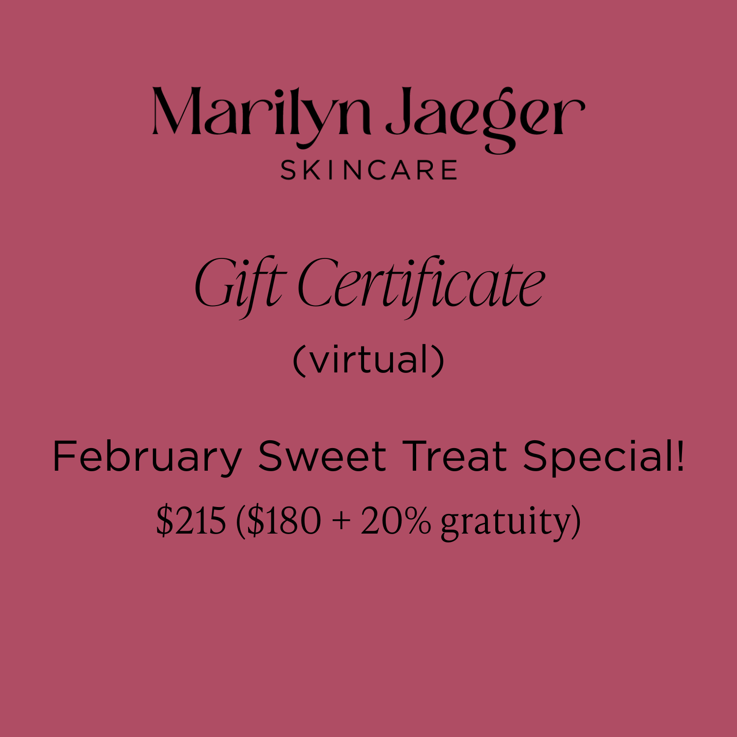 Purchase a gift certificate for a special someone to experience the luxury of Marilyn Jaeger Skincare for Valentine's Day! Purchase a $300 Certificate for only $250 OR select "February Sweet Treat" which covers the cost + 20% gratuity for the "Sweet Treat Special" which includes MJ Signature Facial, Pomegranate Treatment & LED Light Therapy with foot reflexology - $215 ($180 + tip - $342 value). This Gift Certificate will be emailed for gifting no later than 1-3 days after purchase - please make sure you provide a preferred email at check out!