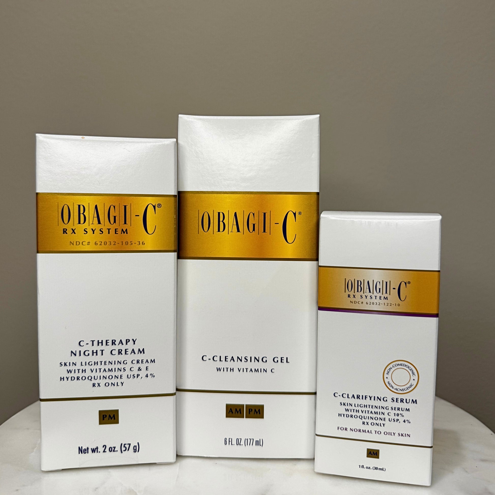 Bundled together are two products with 10% L-Ascorbic Acid and 4% Hydroquinone to brighten hyperpigmentation, protect your skin from free radicals and promote collagen synthesis. C-Cleansing Gel to start your morning and night with fresh clean skin, C-Clarifying Serum for daytime and C-Therapy Night Cream for night time. Prevent and treat signs around the clock!